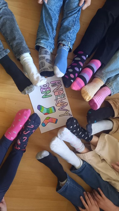 V pátek 21. března 2025 se naši žáci zapojili do Ponožkového dne, který je každoročně pořádán na podporu dětí a lidí s Downovým syndromem. Celá škola se barevně rozzářila, protože většina dětí i učitelů přišla s různými, pestrými a nesourodými ponožkami.